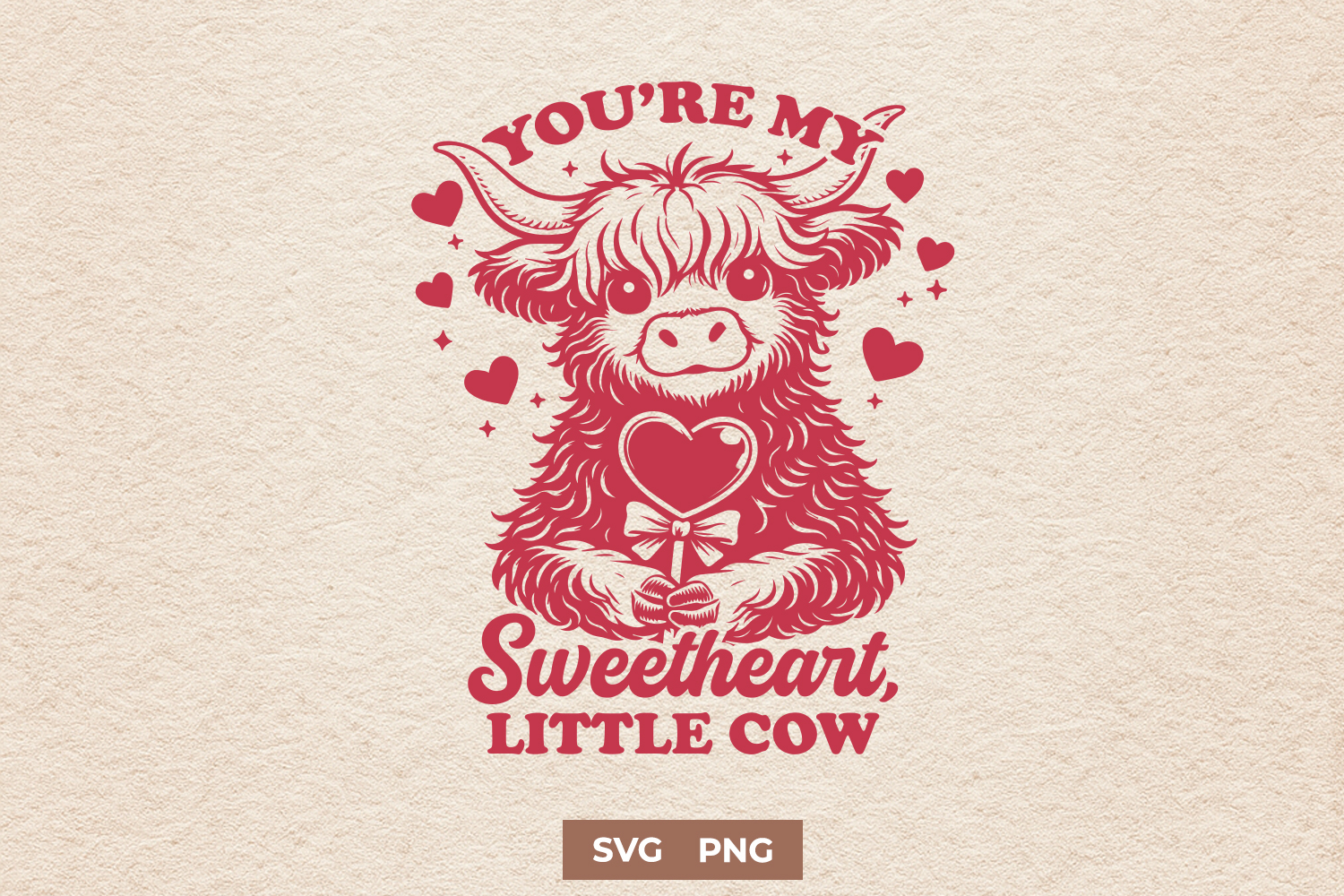 This Highland Cow Valentine SVG features a sweet fluffy cow surrounded by hearts with the romantic quote “You’re My Sweetheart, Little Cow.” The design is perfect for Valentine’s Day crafts, cow lover gifts, and cute farmhouse projects. Included SVG and PNG files ensure easy use with all cutting machines. A great choice for anyone searching for cute cow clipart, sweetheart cow designs, Valentine farm animal SVGs, Highland cow artwork, and romantic cow quotes.