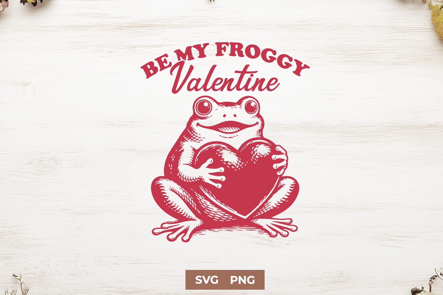 A high-quality Frog SVG and PNG featuring an adorable frog holding a heart with the sweet phrase “Be My Froggy Valentine.”