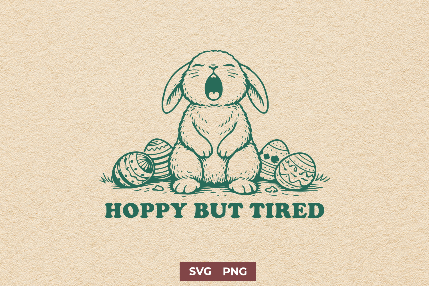 Hoppy But Tired SVG | Funny Easter Bunny Vintage PNG Design example image 1