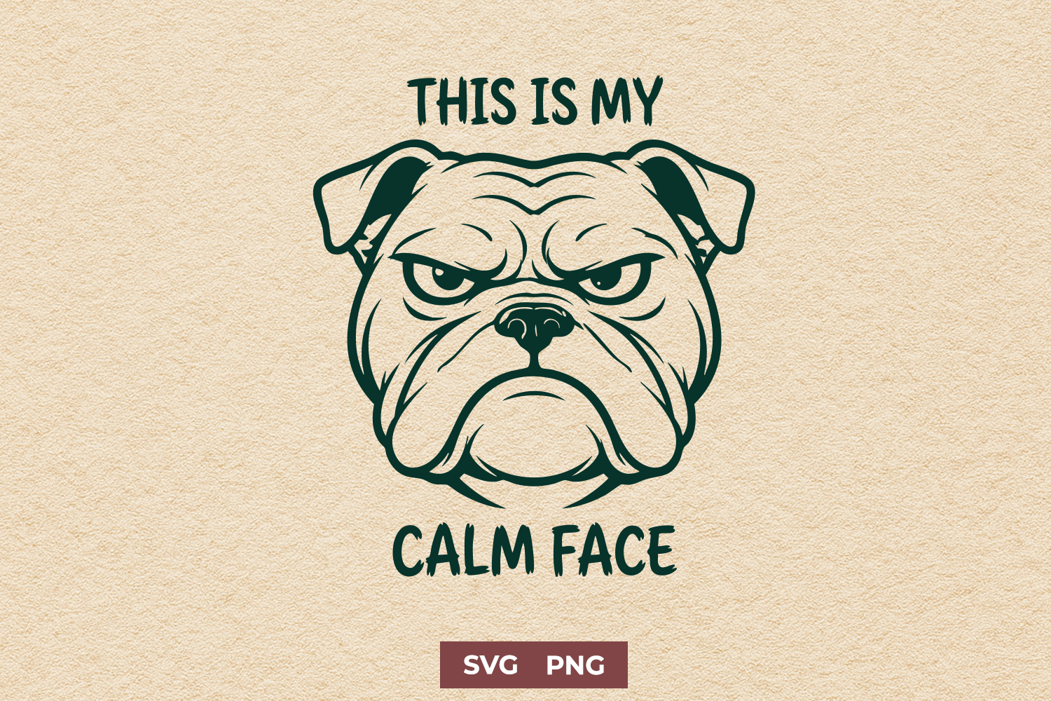 This This Is My Calm Face SVG features a bold angry bulldog illustration with a sarcastic quote. Perfect for funny t-shirts, hoodies, mugs and gifts for dog lovers.