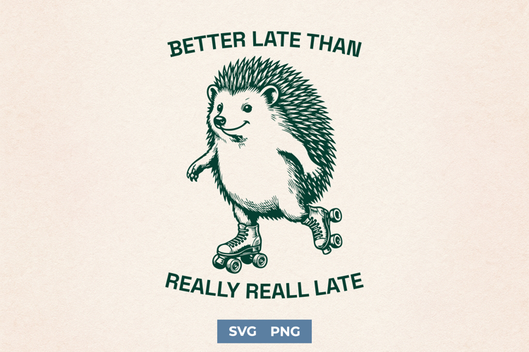 Cricut Cut File Cute Animal Svg Roller Skate Svg Sublimation Png Funny Quote Png Procrastination Quote Funny Hedgehog Svg Better Late Design Late Person Gift Adhd Humor Shirt