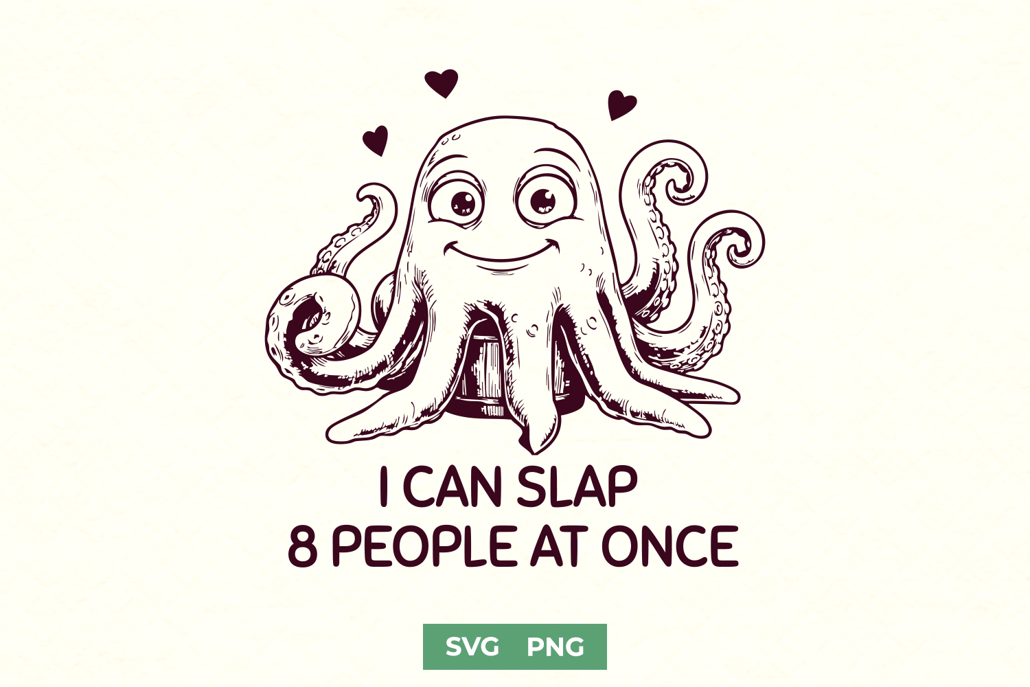 Funny Octopus SVG for Sarcastic Shirts - I Can Slap 8 People example image 1