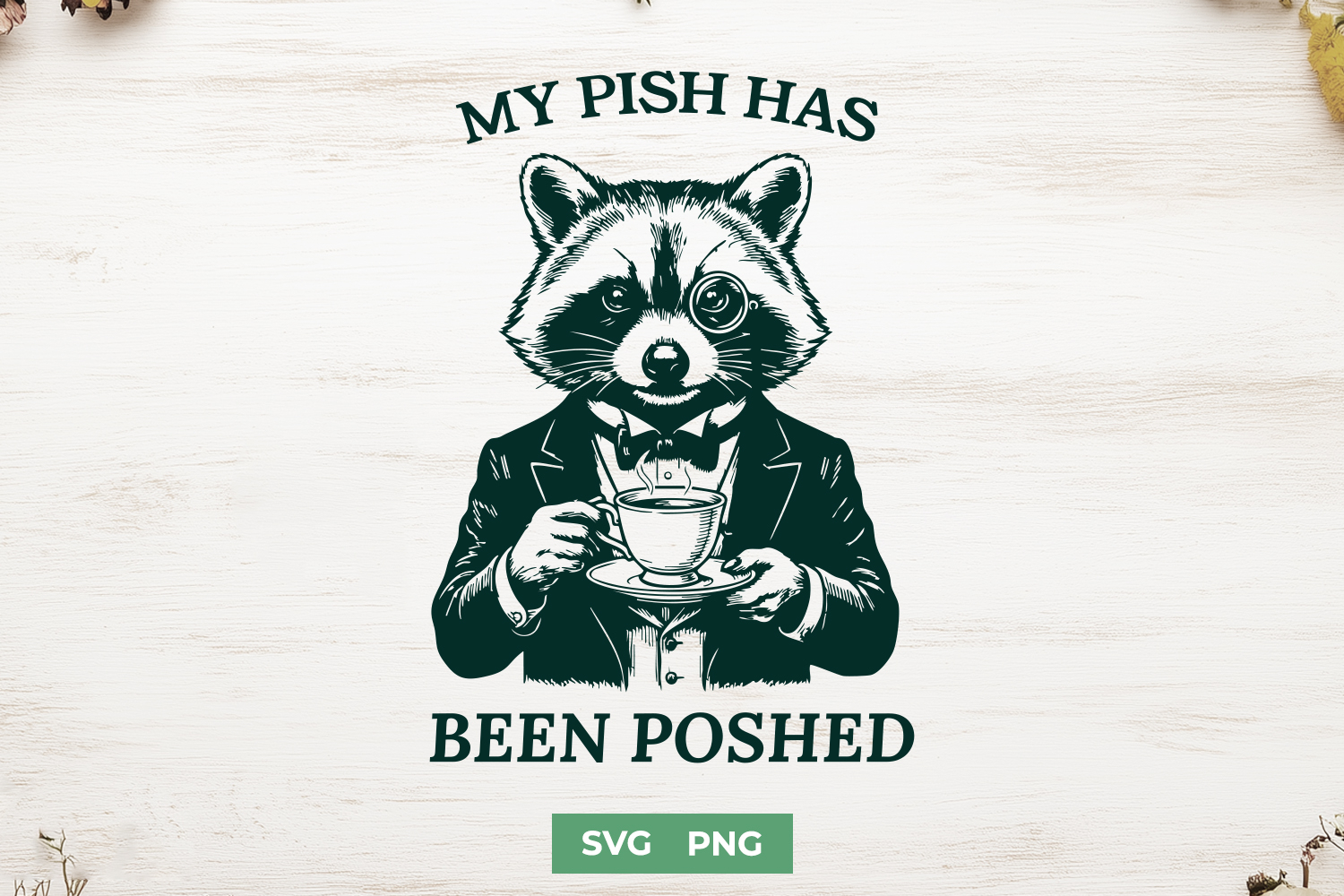 Similar Design Products to My Pish Has Been Poshed SVG - Funny Raccoon with Monocle PNG