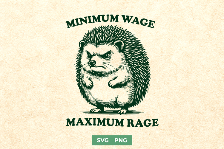 Minimum Wage Maximum Rage SVG - Angry Hedgehog Sarcastic PNG