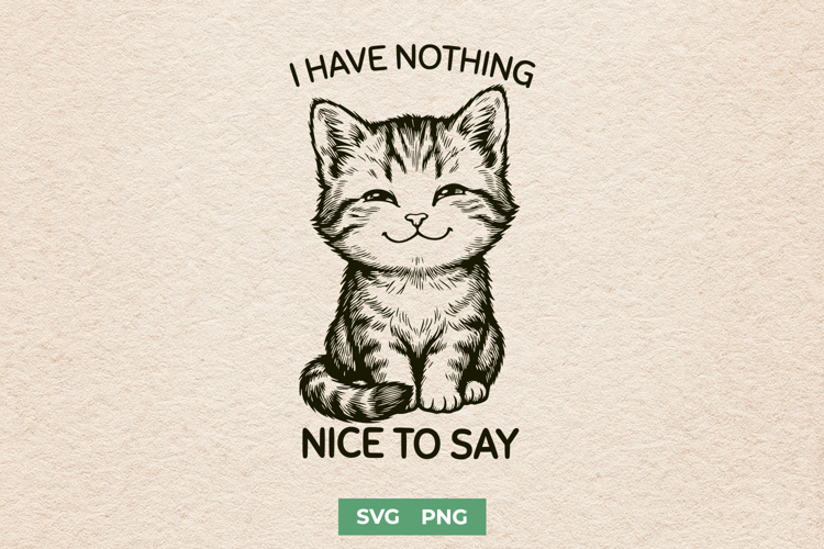 This funny cat SVG features a cute kitty with the sarcastic quote “I have nothing nice to say.” Perfect as a Cricut cut file or sublimation PNG for shirts, stickers, and gifts. Great for shoppers searching sassy cat SVG, office sarcasm, introvert humor, and sarcastic quote SVG designs.