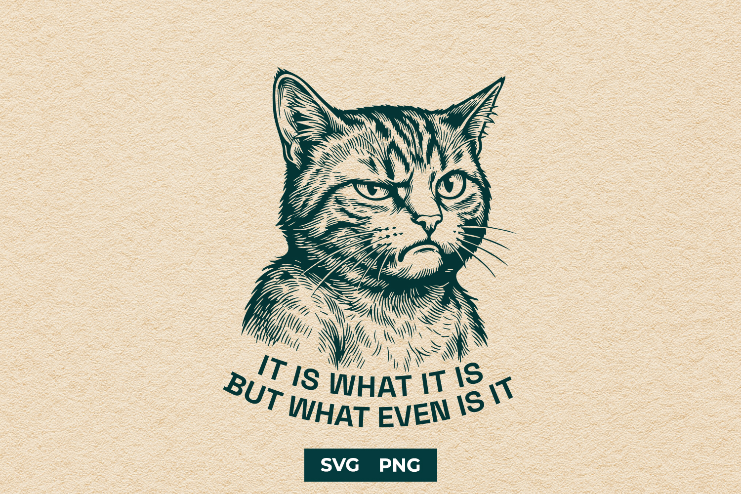 Cat Svg Funny Cat Shirt Design Sticker Design It Is What It Is Vintage Cat Sarcastic Cat Engraving Style Retro Cat Woodcut Cat