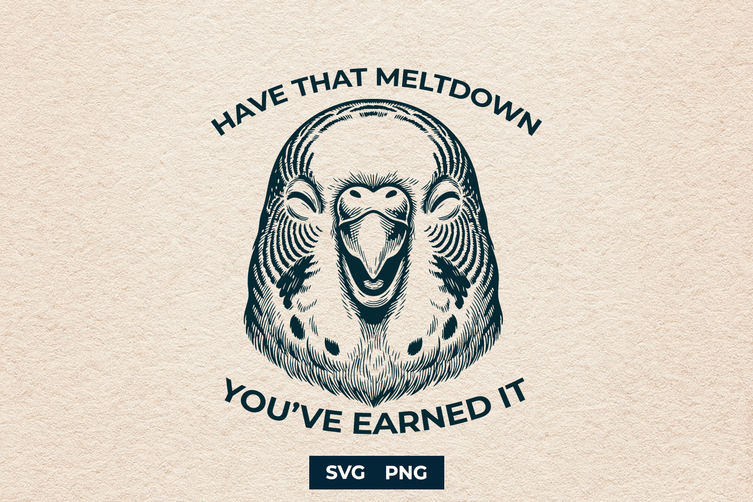 We’ve all been there, sometimes you just need to let it all out. This premium vector design features a loud and proud screaming parakeet in a stunning vintage engraving style, paired with the ultimate supportive (yet sarcastic) message: "Have that meltdown, you've earned it." It's the perfect blend of pet love and modern-day relatability.