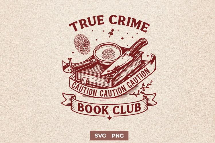 This True Crime Book Club SVG is a vintage-style detective graphic perfect for mystery readers and true crime fans. Use it as a Cricut cut file or sublimation PNG for shirts, stickers, and gifts. Great for searches like true crime SVG, book club SVG, mystery reader, and thriller book lover.