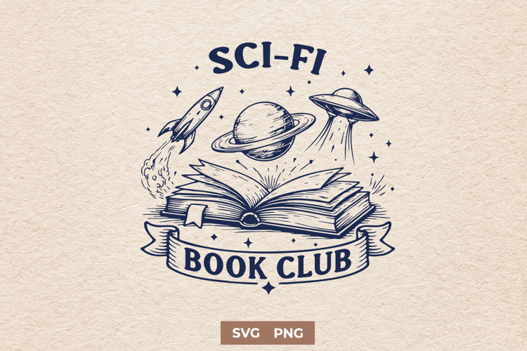 This Sci-Fi Book Club SVG is a space-themed science fiction design with a rocket, planet, and UFO—perfect as a Cricut cut file or sublimation PNG for book club shirts, stickers, and gifts. Great for searches like science fiction SVG, space SVG, alien UFO, and book club SVG.