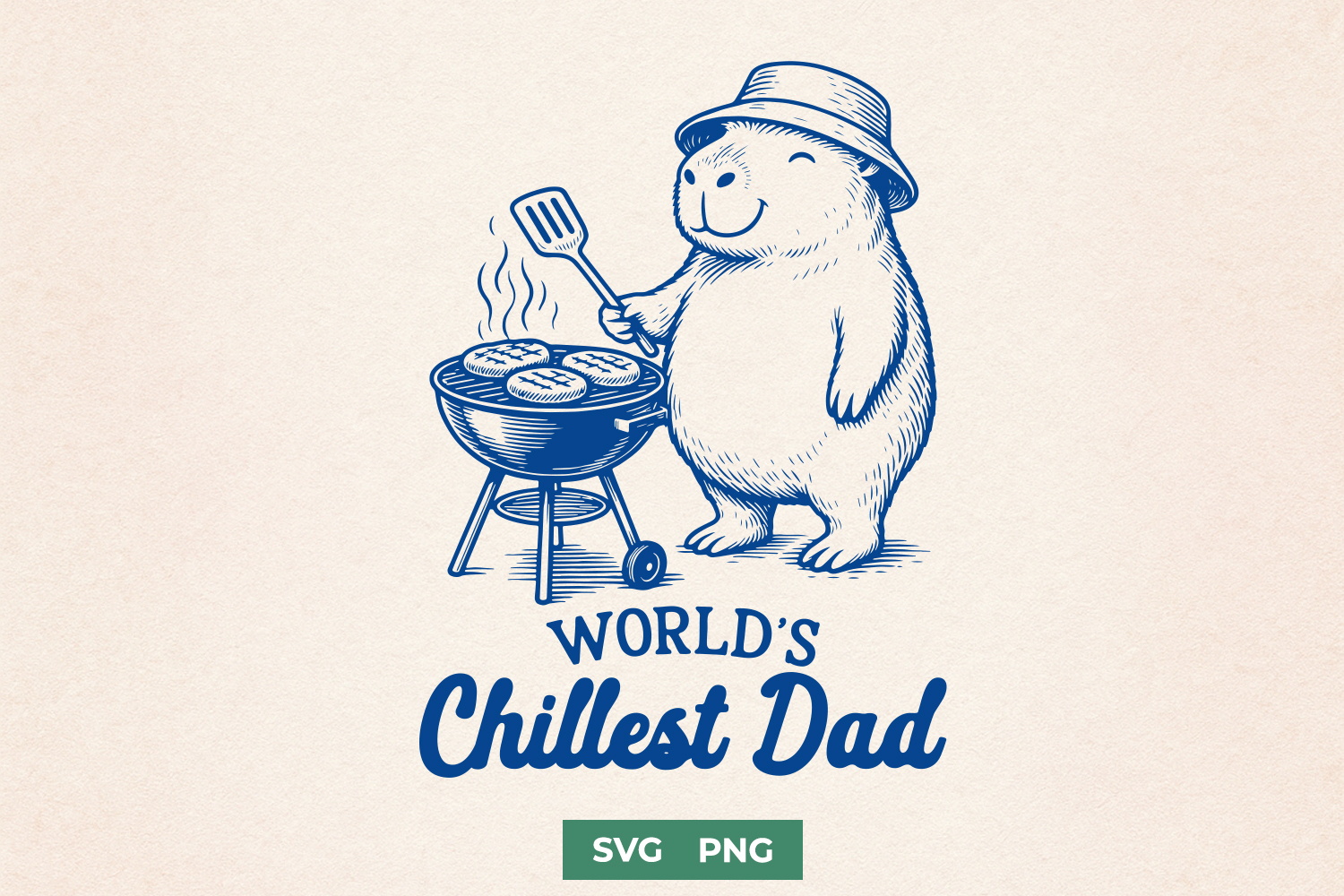 This World’s Chillest Dad SVG is a funny Father’s Day and BBQ dad design featuring a capybara at the grill—perfect as a Cricut cut file or sublimation PNG for dad shirts, aprons, and gifts.