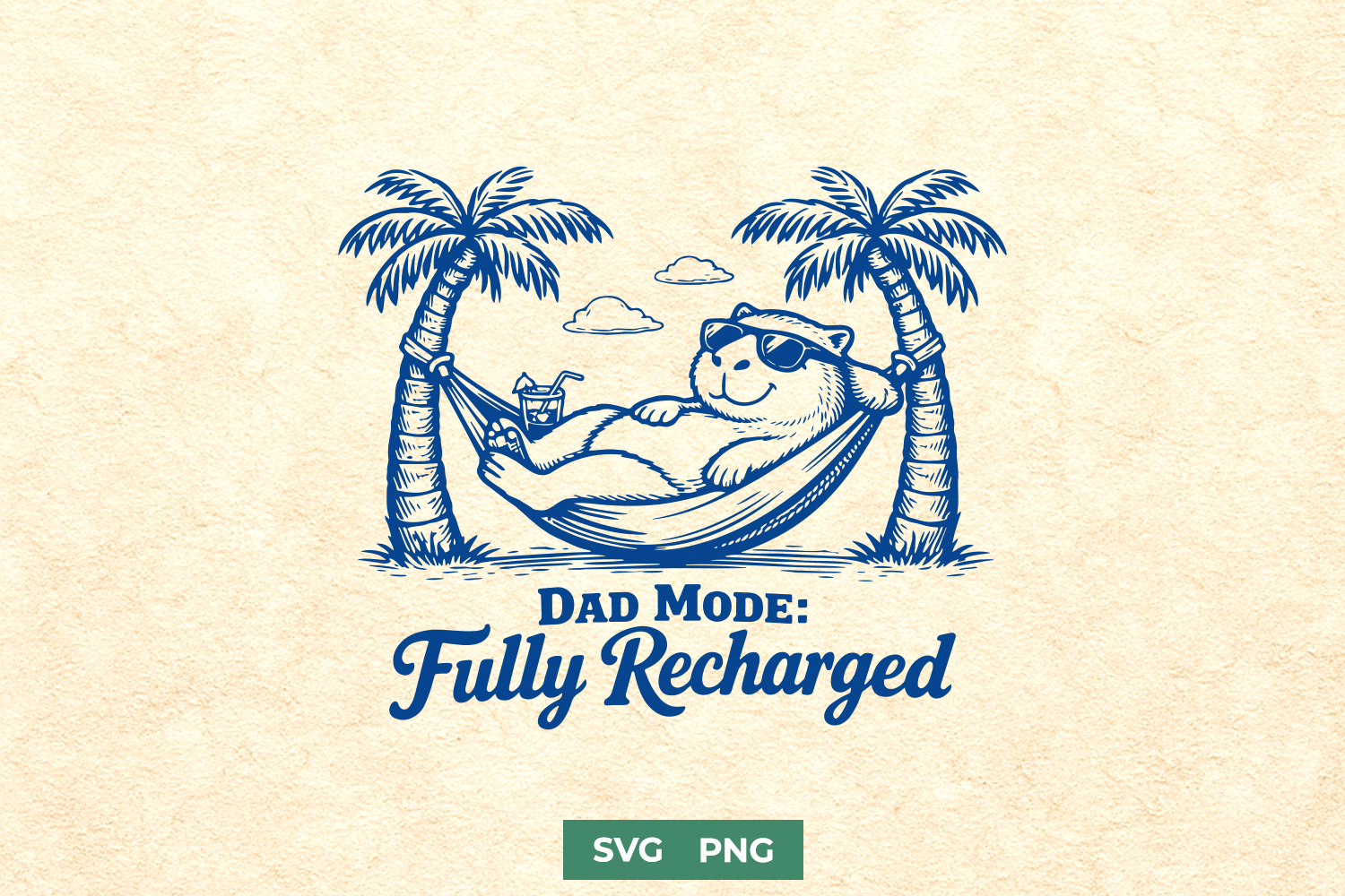 Dad Mode Fully Recharged SVG - Funny Capybara in Hammock PNG