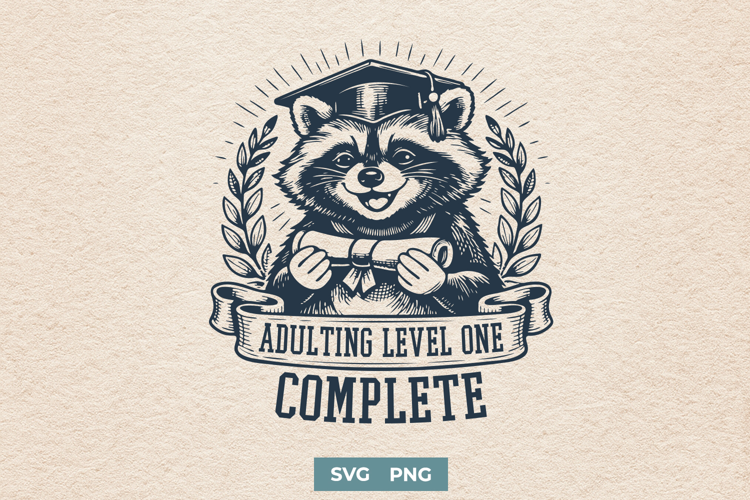 Similar Design Products to Adulting Level One Complete SVG - Funny Graduation Raccoon