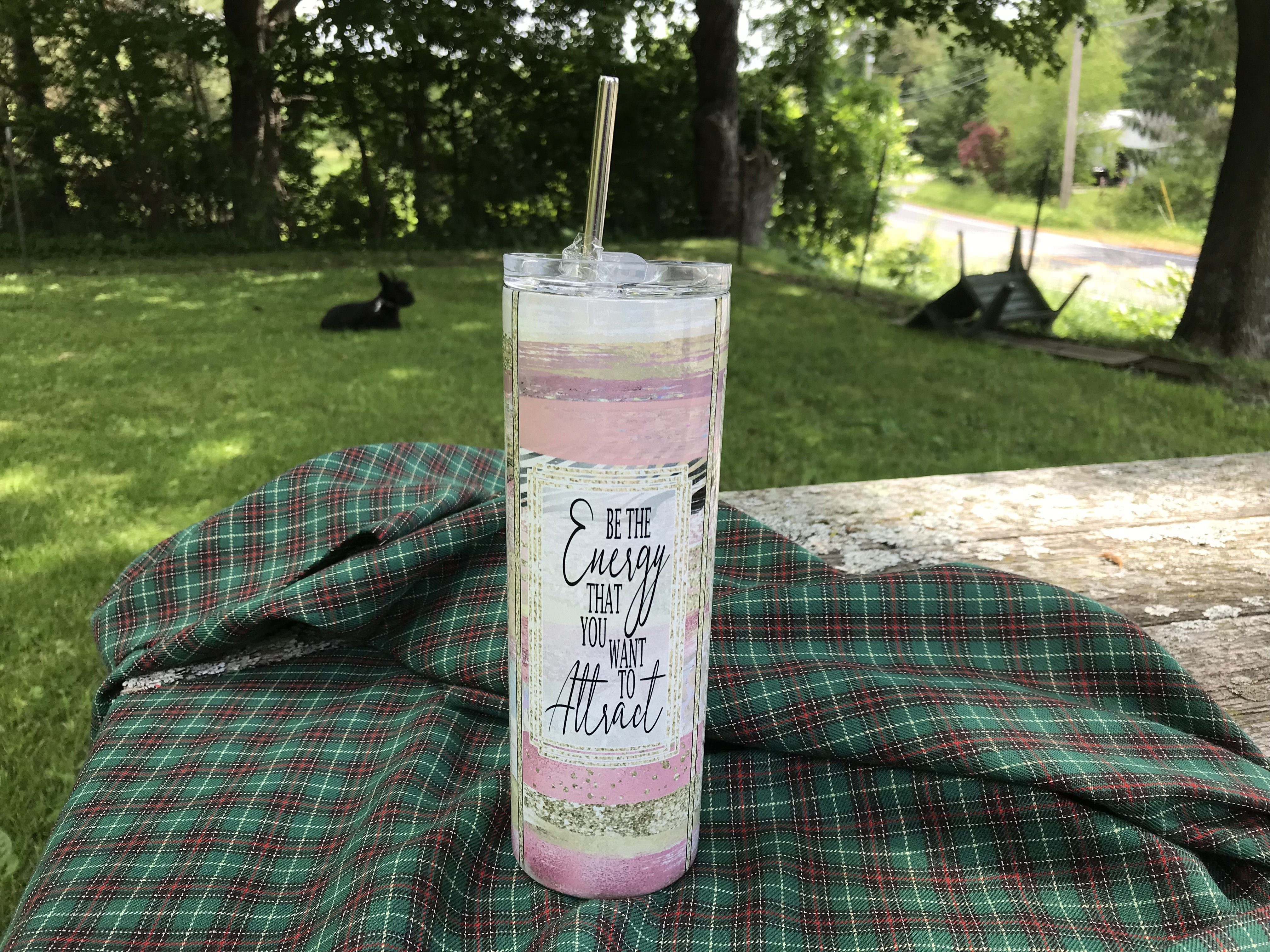 This inspiration full wrap skinny tumbler design was with the Law of Attraction in mind! This cup inspires me to start each day with gratitude and the power of positivity! It is a beautiful 3 sided paint stroke design with pink coral and gold glitters and textured strokes. It is made with my Tri-Split cup design. This design allows the 3 sections to be joined together by a purposeful border, for a clean, seamless look that is SIMPLE to apply, no worrying about lining up lines! Video is of this actual design used on a 30oz sublimation skinny straight tumbler!