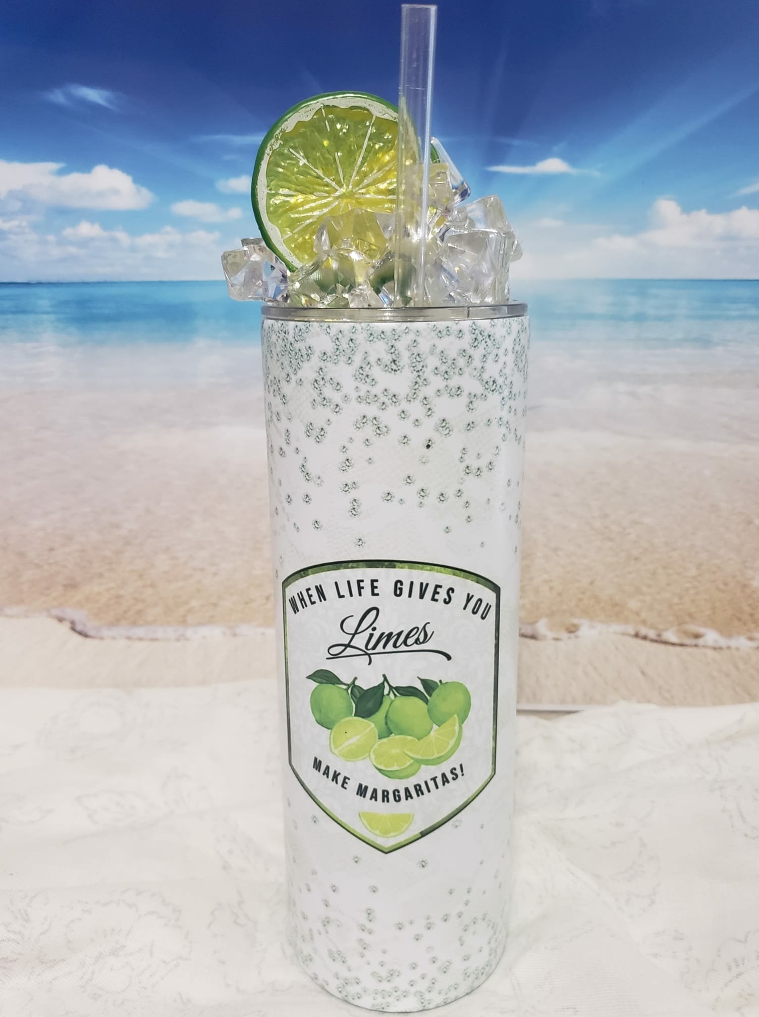 When life gives you limes, make margaritas skinny tumbler design is bright and cheerful with the fun green watercolor textured background and confetti and diamond glitter accents. The cute margarita label has watercolor limes with a product label type feel. This would make a perfect full tumbler design for those who like to make the accent lime and ice toppers for your tumblers!