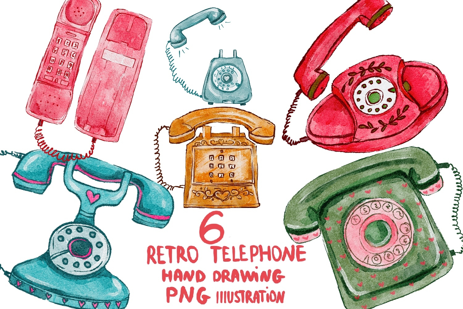 watercolor telephone retro style 6 items png example image 1