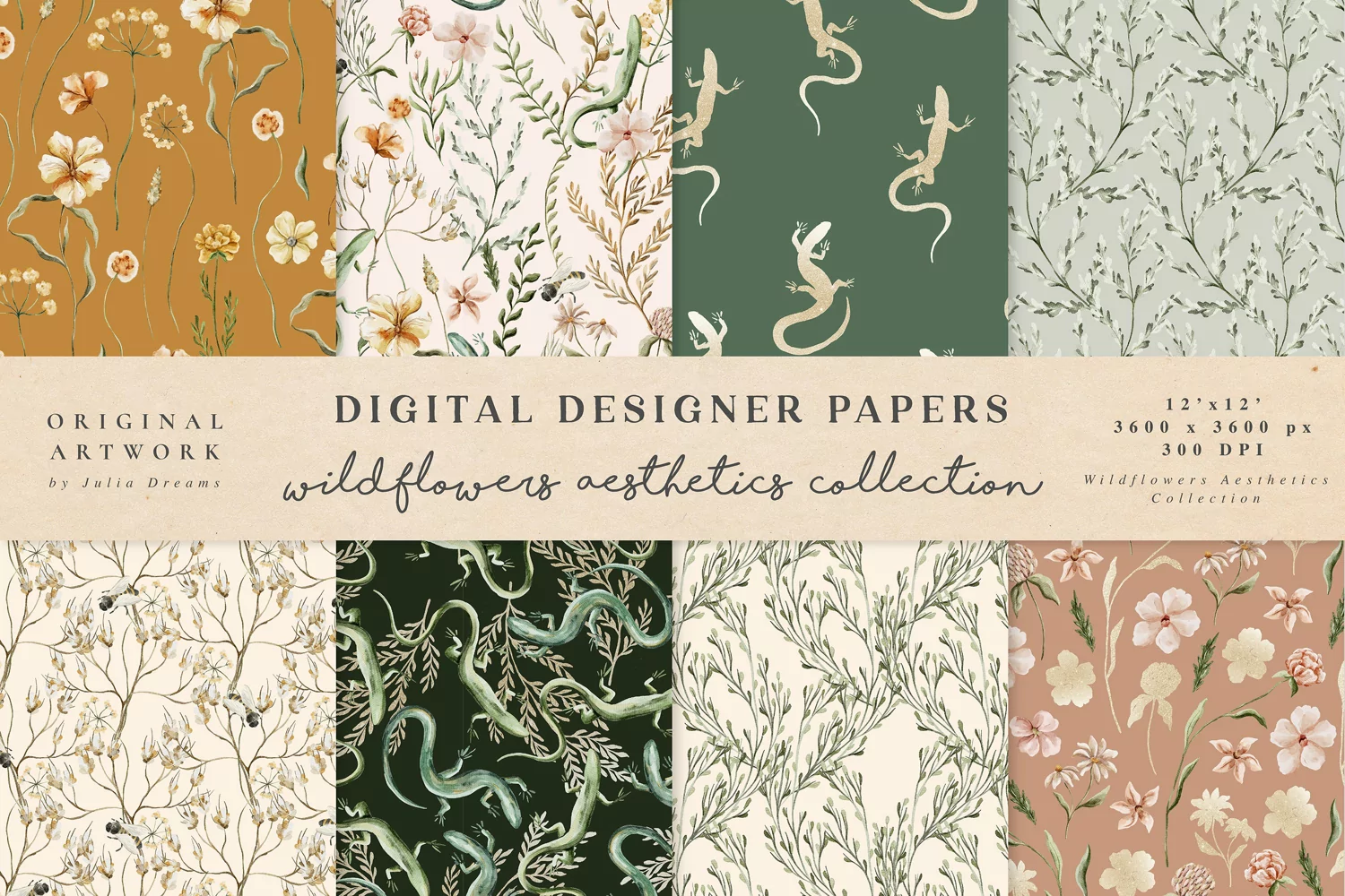 Set of 8 High Quality Wildflowers Aesthetics Digital Papers from Wildflowers Aesthetics Watercolor Collection