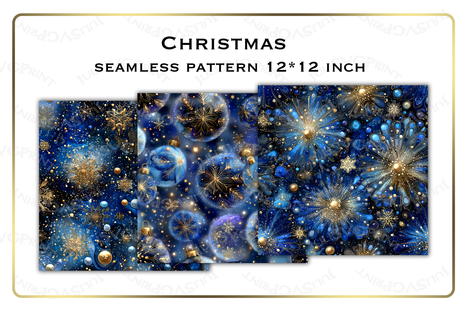 Seamless christmas pattern. Blue gold ornaments and balls background. textures digital papers 12 x 12. Instant Download