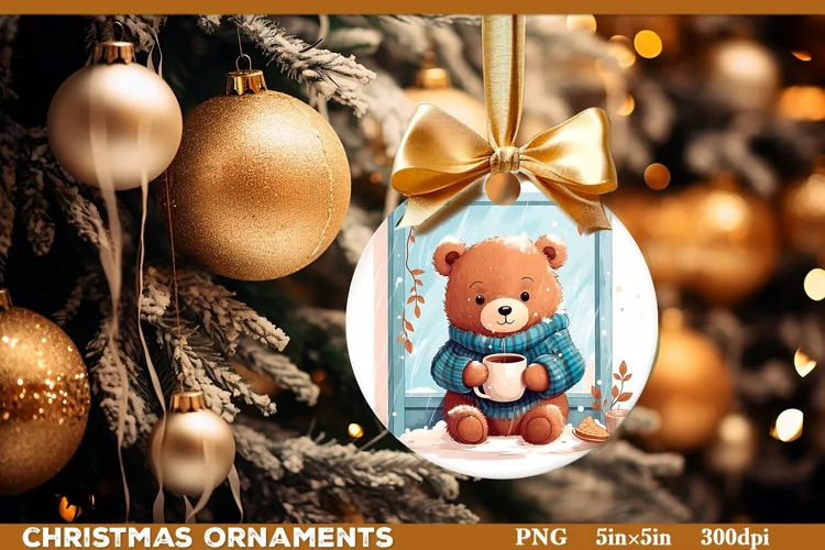 Christmas Ornaments with Cute Bear. Christmas Sublimation 4