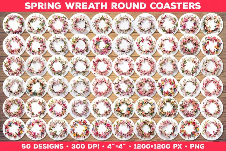 Spring Wreath Sublimation Round Coaster Bundle example image 1