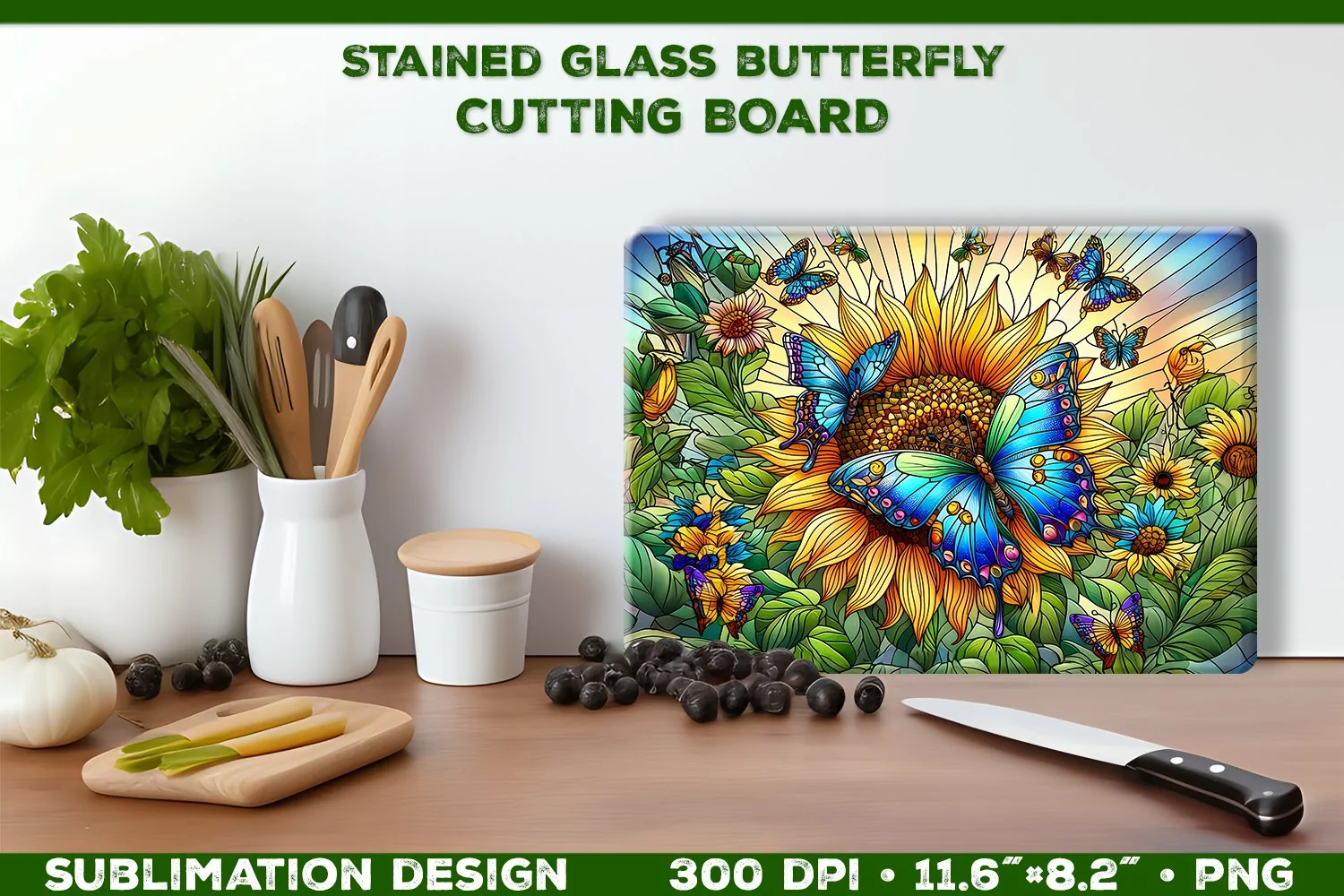 Butterflies and Sunflowers Stained Glass Cutting Board example image 1