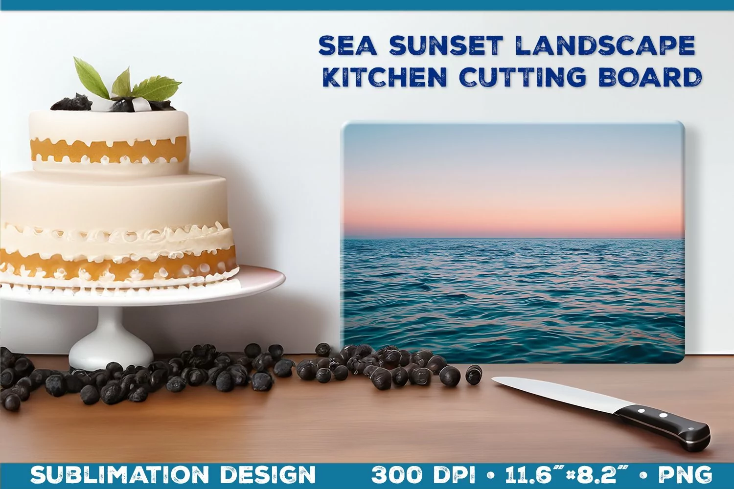 Bring the beauty of a seaside sunset into your kitchen with our Ocean Sunset Cutting Board Sublimation design.