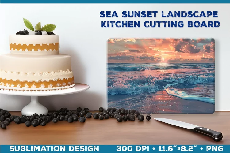 Bring the beauty of a seaside sunset into your kitchen with our Ocean Sunset Cutting Board Sublimation design.