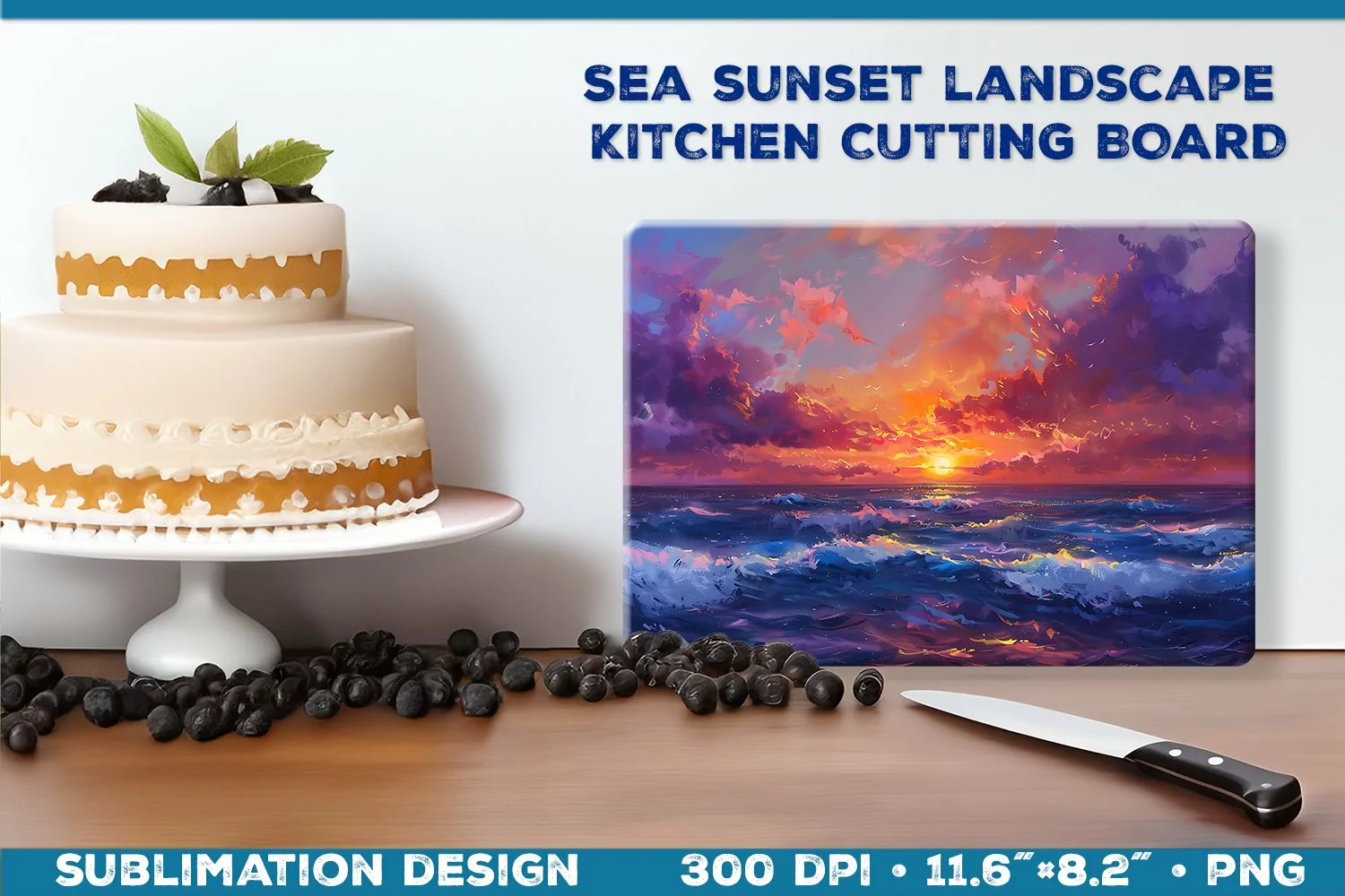 Bring the beauty of a seaside sunset into your kitchen with our Ocean Sunset Cutting Board Sublimation design.