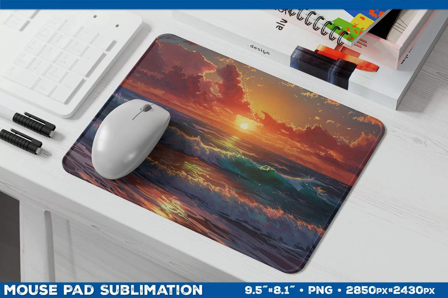 Sunset Waves Mouse Pad Sublimation Design. Mousepad Design example image 1