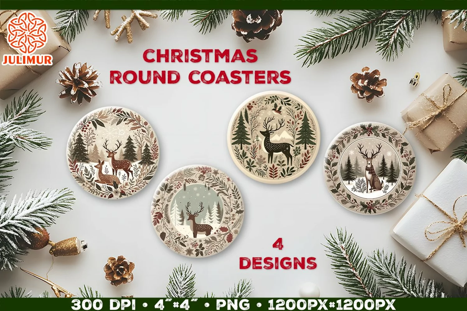 Rustic Woodland Deer Christmas Coaster Sublimation Design example image 1