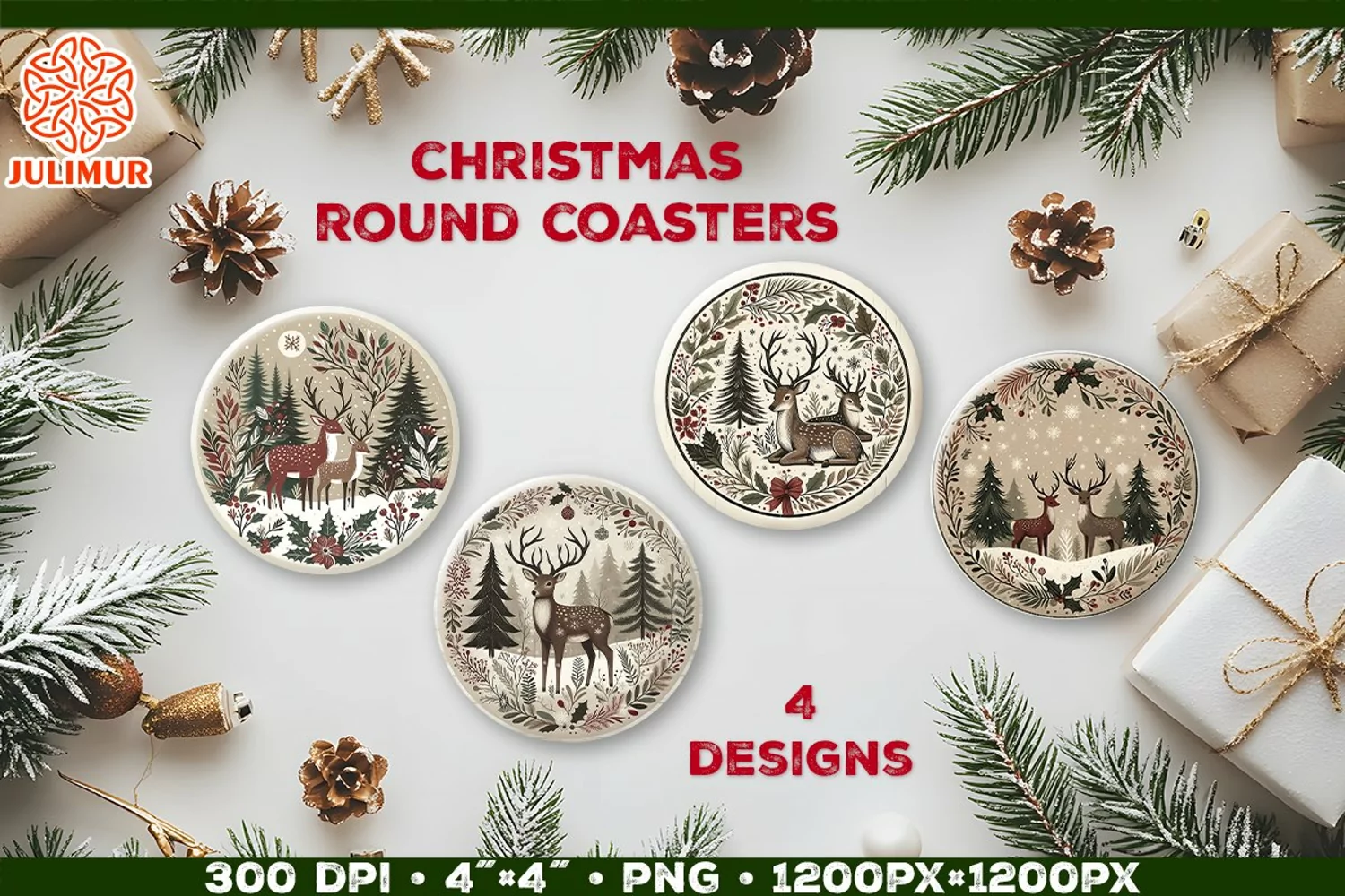 Rustic Woodland Deer Christmas Coaster Sublimation Design example image 1