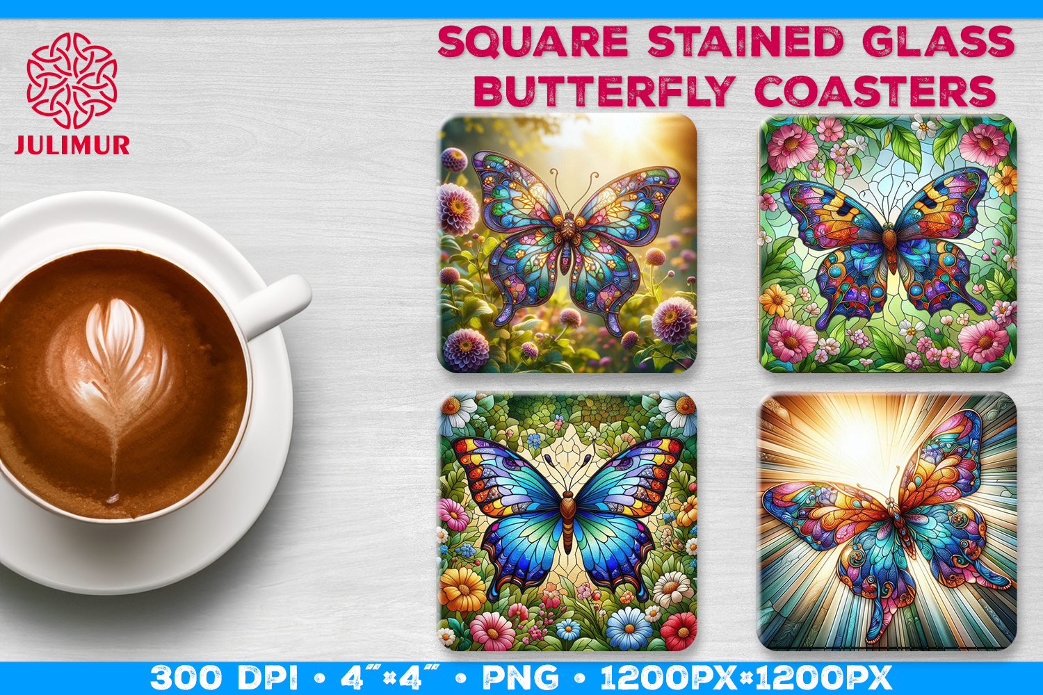 Elevate your coaster collection with this vibrant stained glass butterfly sublimation design.