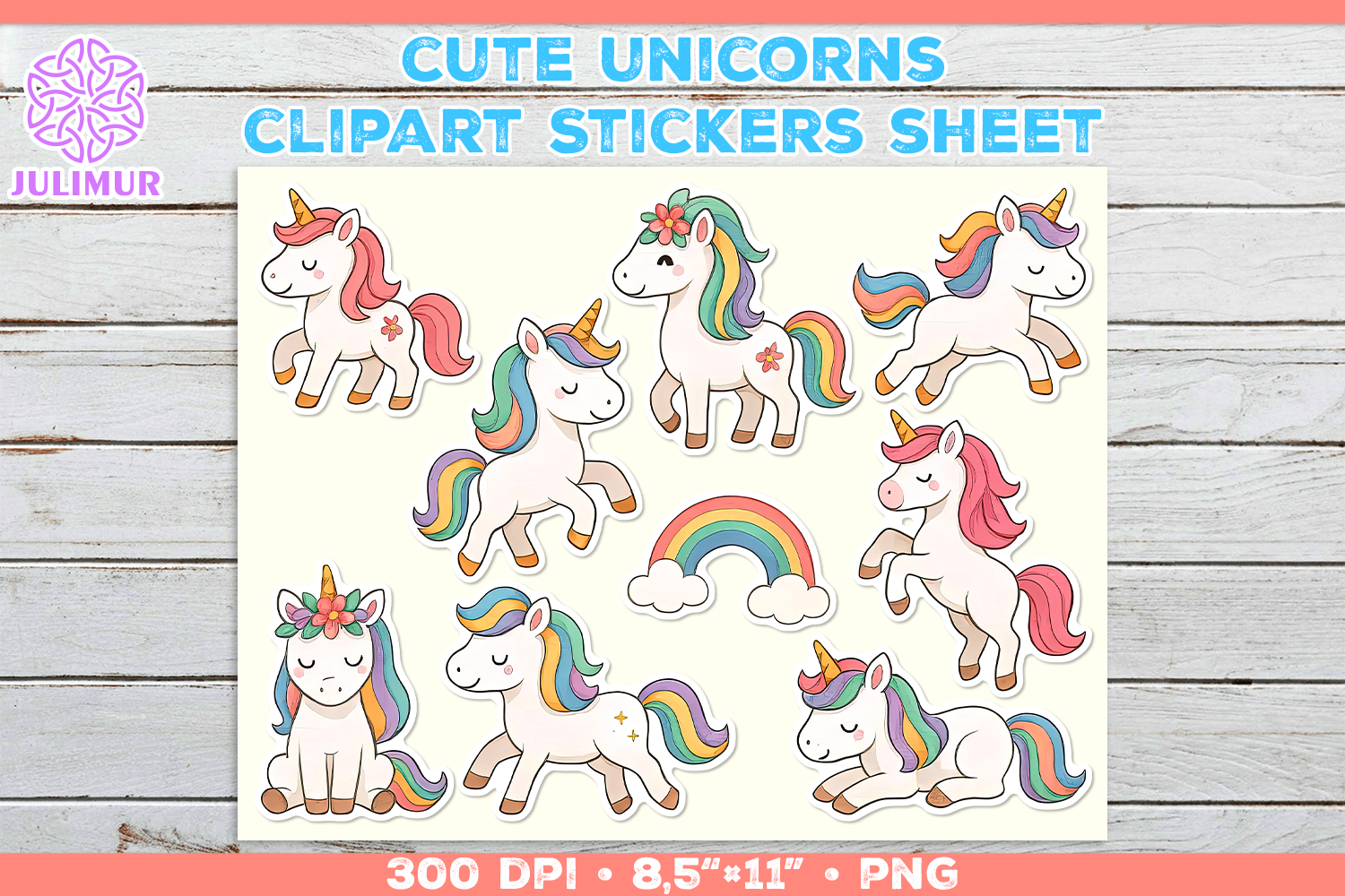 Perfect for Cricut and Silhouette users, these stickers are isolated on a clean white background for easy printing and cutting. This set works beautifully for print-on-demand shops, craft makers, teachers preparing classroom materials, and anyone who enjoys colorful, uplifting artwork. Whether you’re building a kawaii collection or adding a magical touch to your planner, these unicorns bring delight to every page.