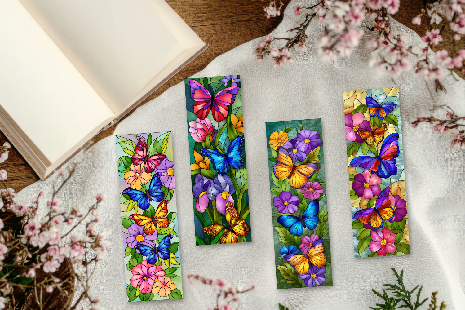 Similar Design Products to Stained Glass Butterfly and Blooms Printable Bookmarks