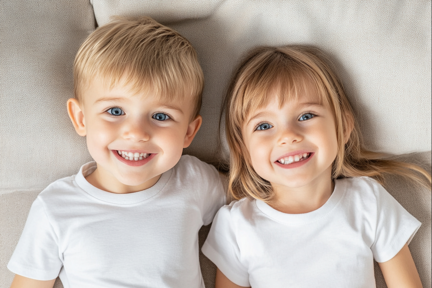 Photorealistic Kids T-Shirt Mockup with Two Children