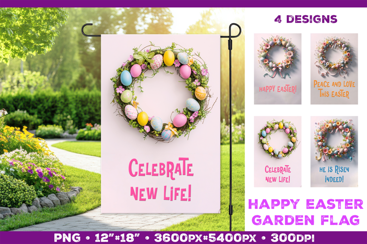 Similar Design Products to Easter Garden Flag Sublimation Design with Floral Wreath