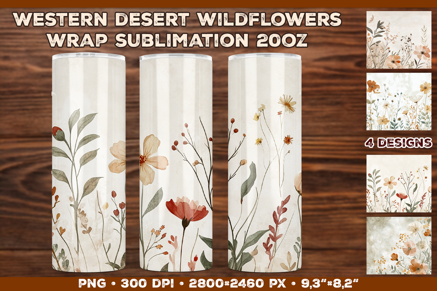 Tumbler Wrap Sublimation Design with Western Desert Flowers