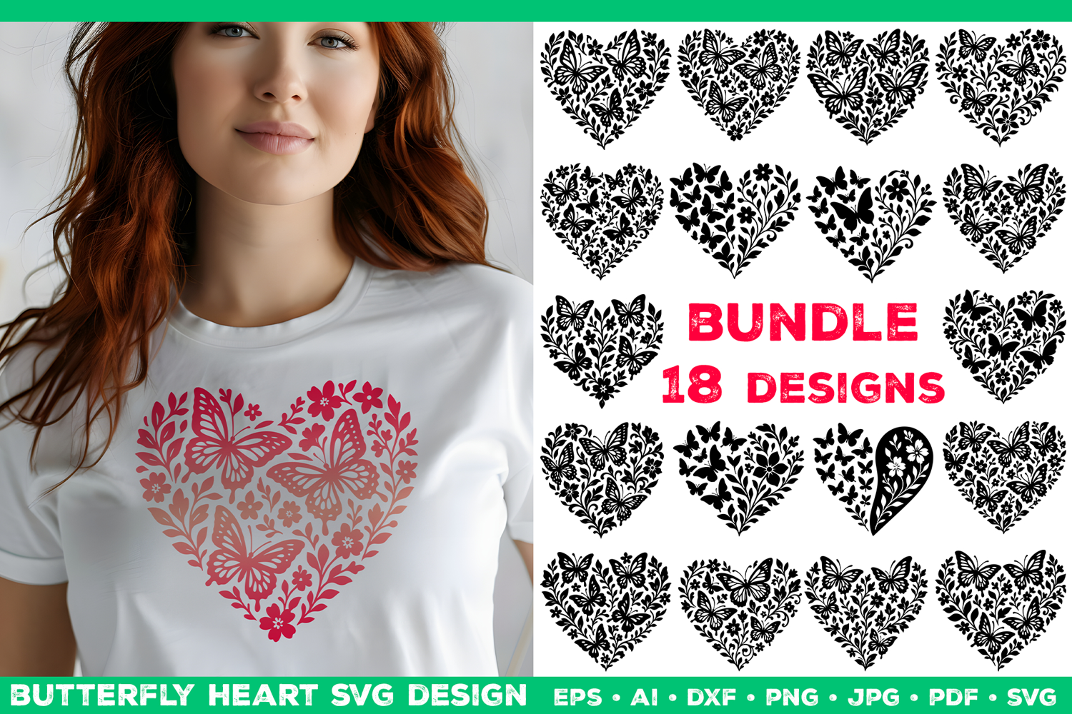 A refined heart silhouette that combines butterflies and florals into one cohesive, ready vector design.