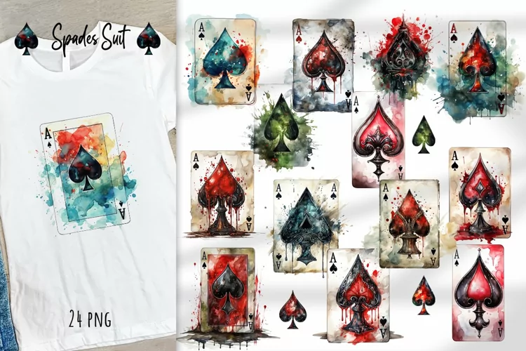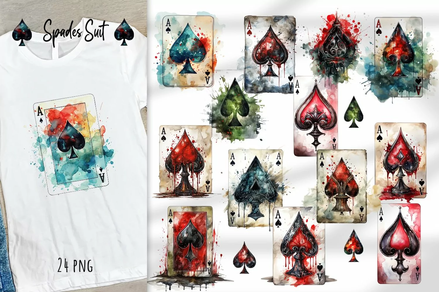 play card,  sublimation,  clipart,  game,  spades suit,  watercolor,   T-Shirt design, posters, mug design, tumbler design, tote bag, pillow sublimation, clip art,