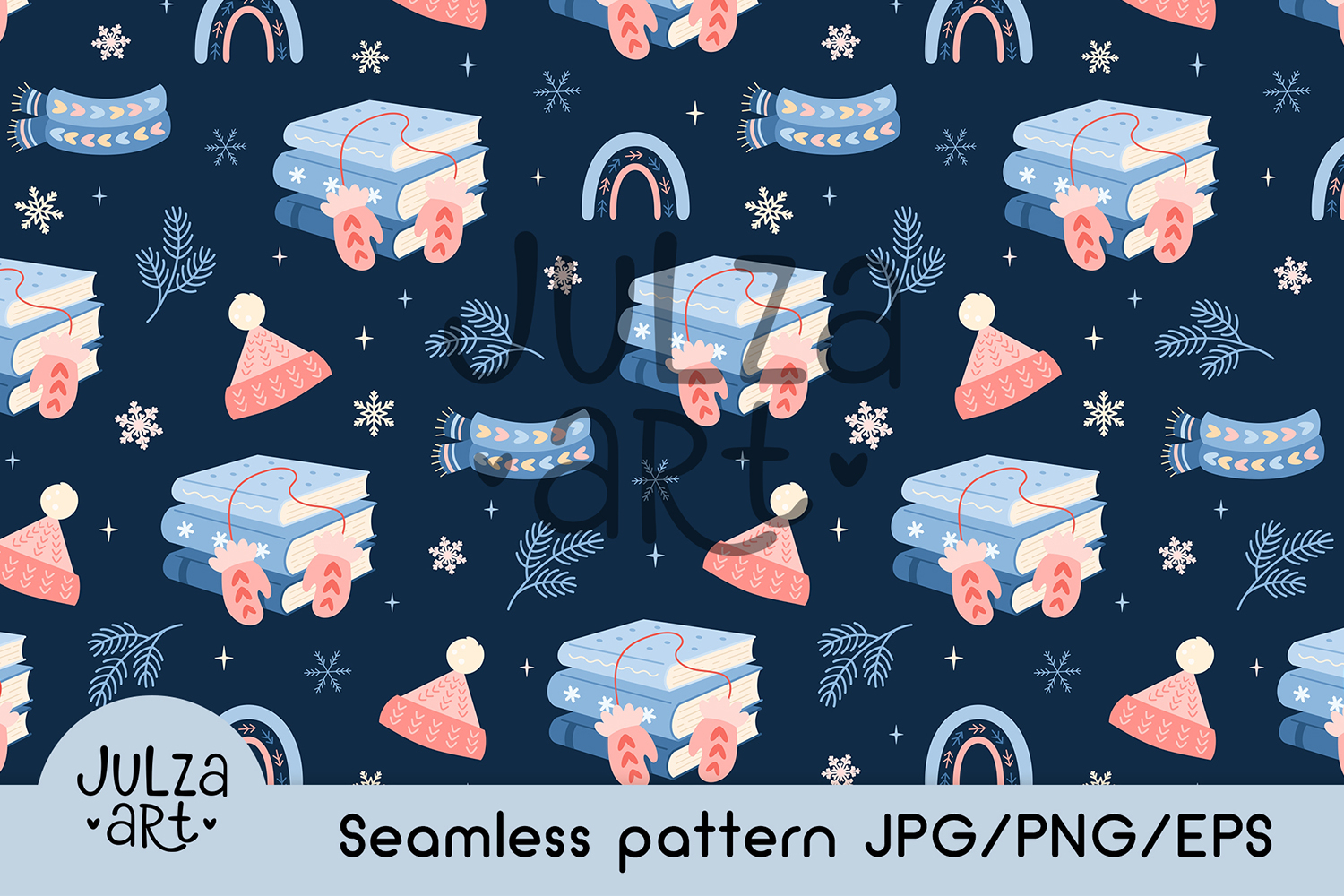Winter Books Seamless Pattern, Cozy Bookish Background example image 1