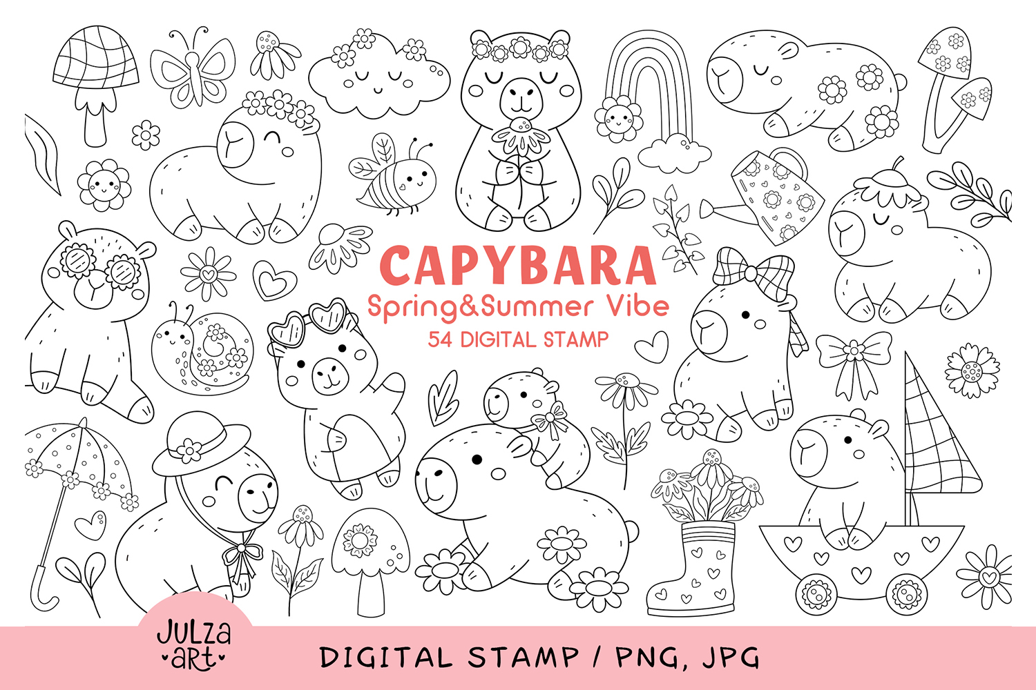 Similar Design Products to Capybara Digital Stamp, Spring Coloring Page, Summer Doodle