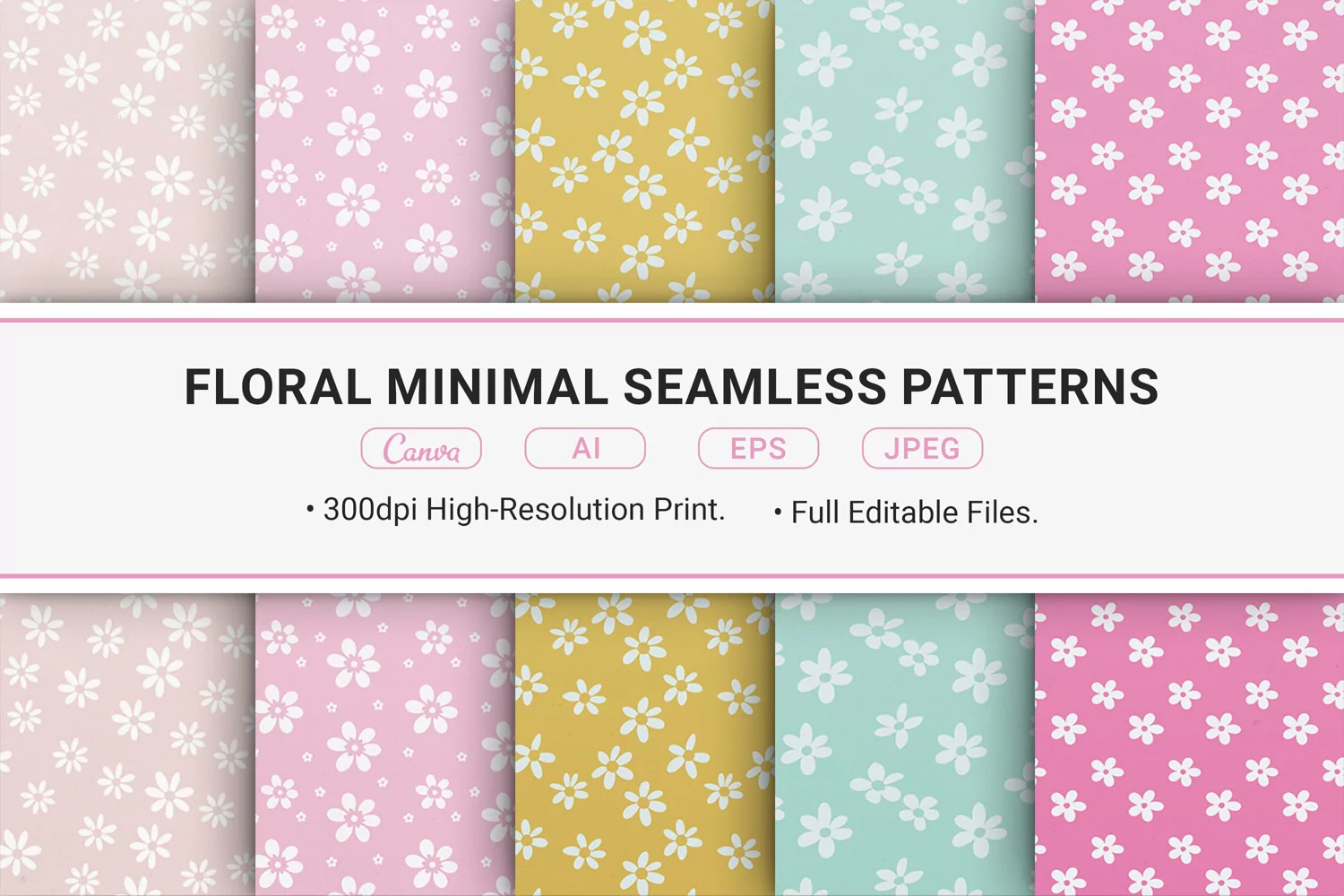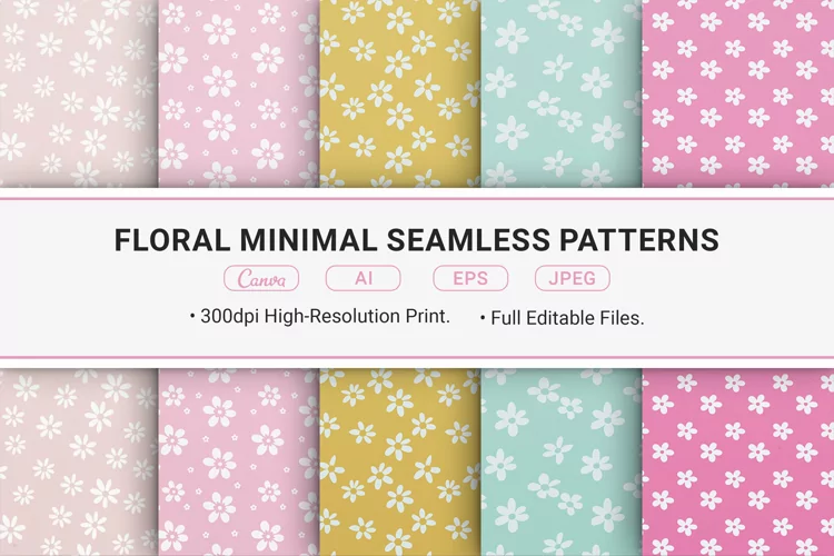 Elevate your designs with this collection of 5 minimal floral seamless patterns!