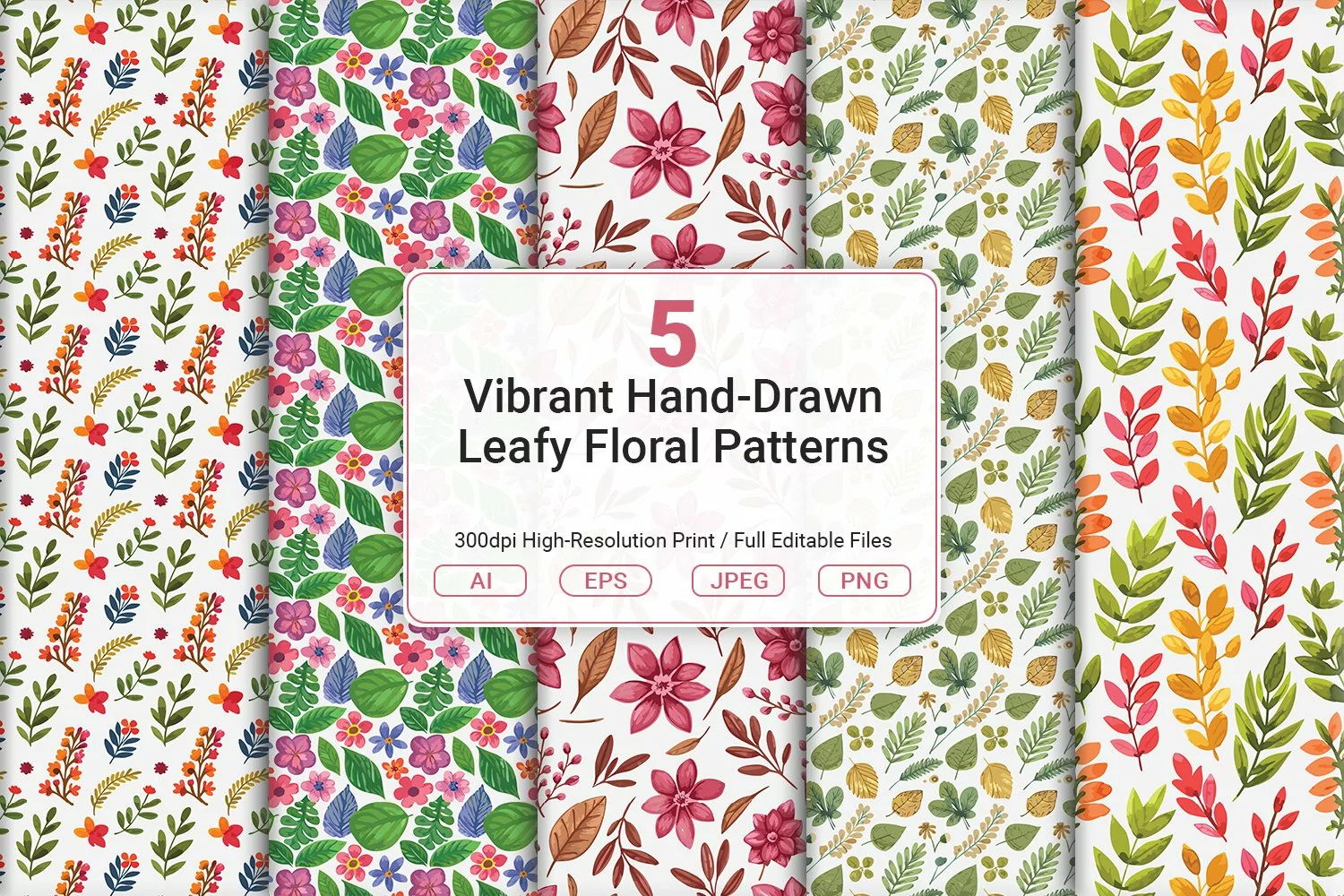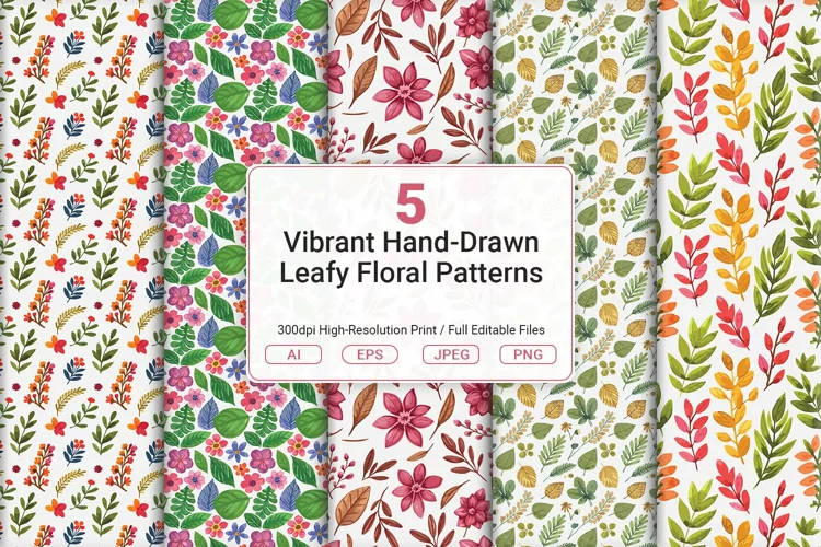 Vibrant Hand-Drawn Leafy Floral Patterns