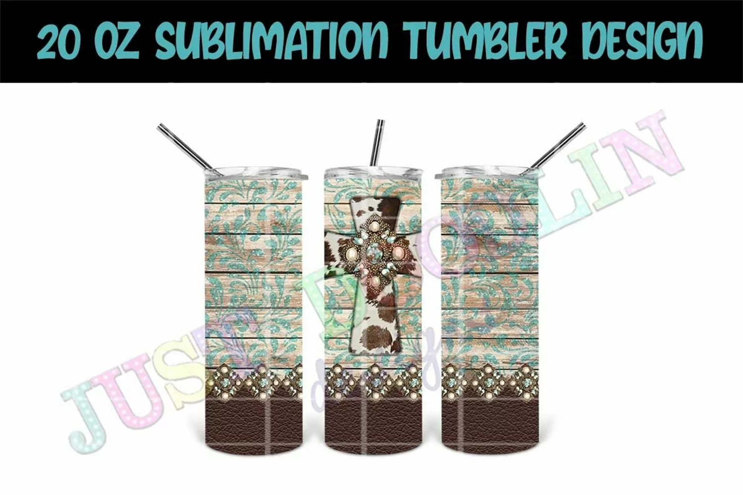 20oz Sublimation Tumbler Design | Western Cross Tumbler Wrap