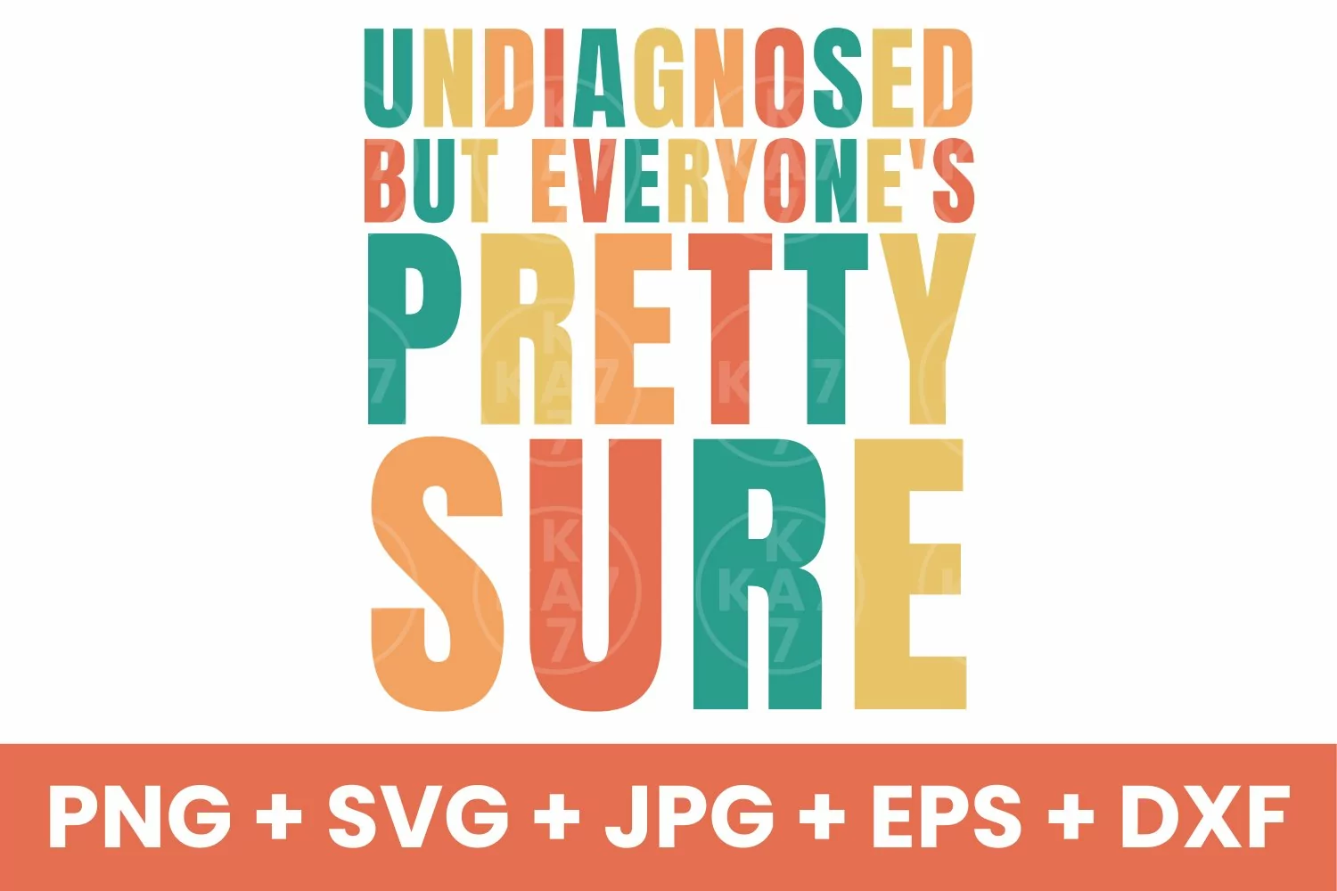 Add some retro humor to your crafting projects with the 'Undiagnosed But Everyone's Pretty Sure' design. This vintage-style artwork is perfect for creating custom t-shirts, mugs, tote bags, and home decor with a sarcastic and funny twist.