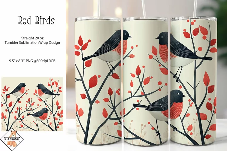 Bird Designs Sublimation Skinny Tumbler Tumbler Sublimation Straight Tumbler 20 Oz Tumbler Red Birds Sublimation Tumbler Wrap