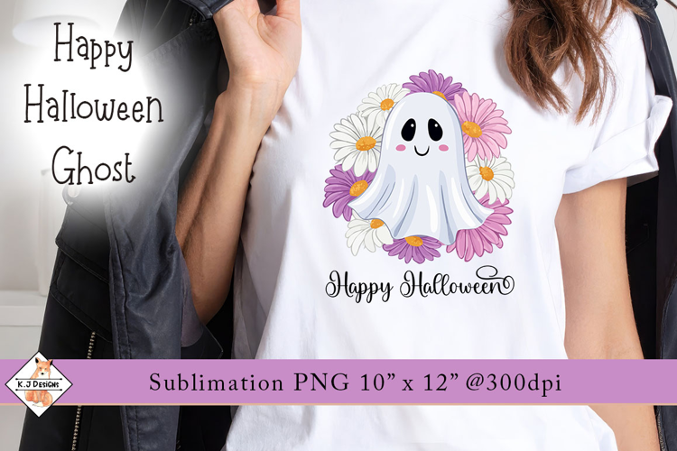 Halloween Svg Pink Daisies Friendly Ghost Ghost Designs Pretty Halloween Designs Happy Halloween Ghost Sublimation Design