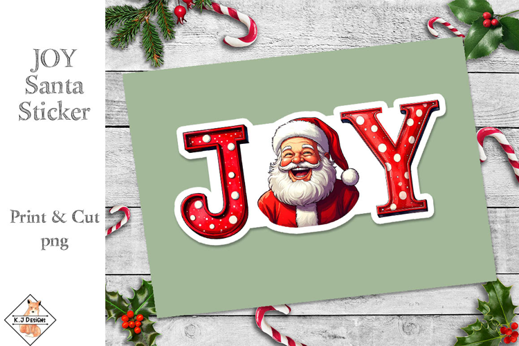 Santa JOY Sentiment Sticker | Print and Cut example image 1