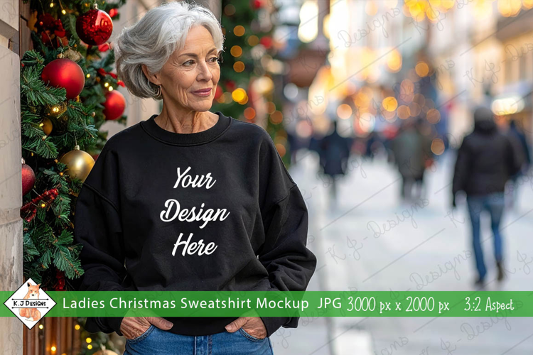 Mature Ladies Christmas Black Sweatshirt mockup jpg example image 1