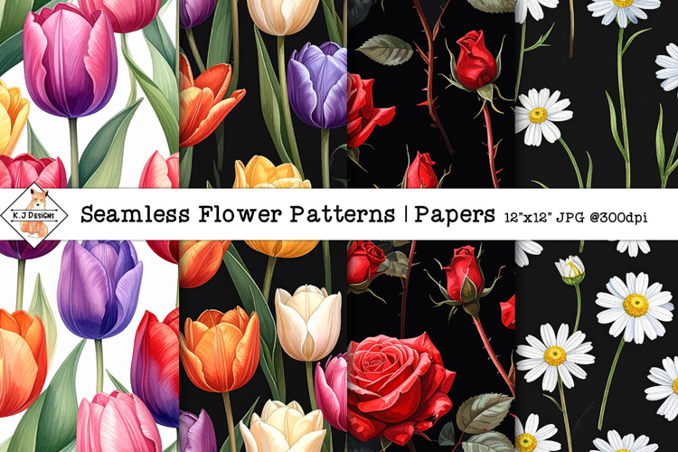 Flowers Patterns Digital Papers Scrapbook Papers Papers Background Papers Daisy Papers Rose Papers Tulip Papers Seamless Flower Patterns Papers