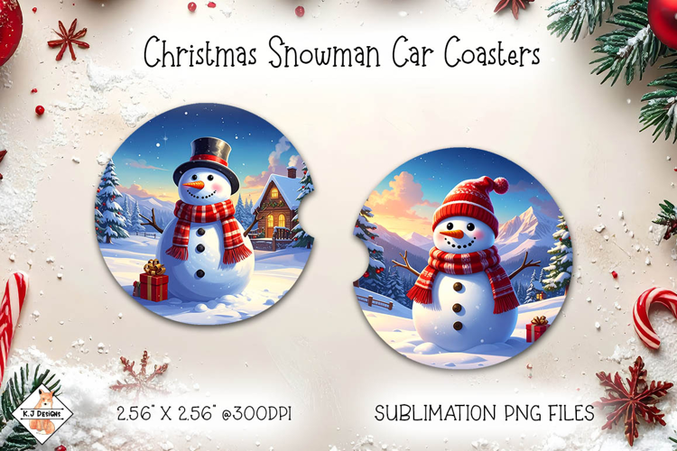 Christmas Snowman Car Coasters | Sublimation Designs example image 1